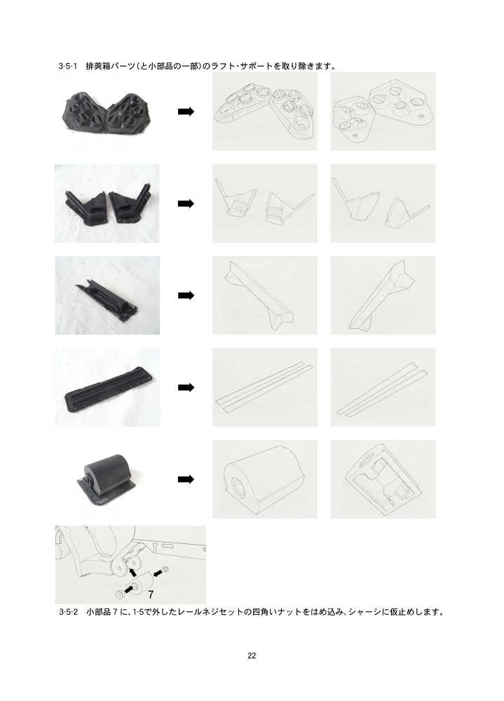 パーツの歪みを補正しつつ、継ぎ目をパテで補正&シャーシを組立られる上級者モデラー向け。
